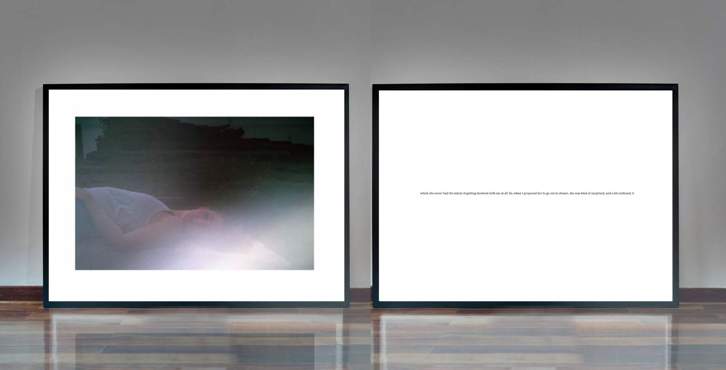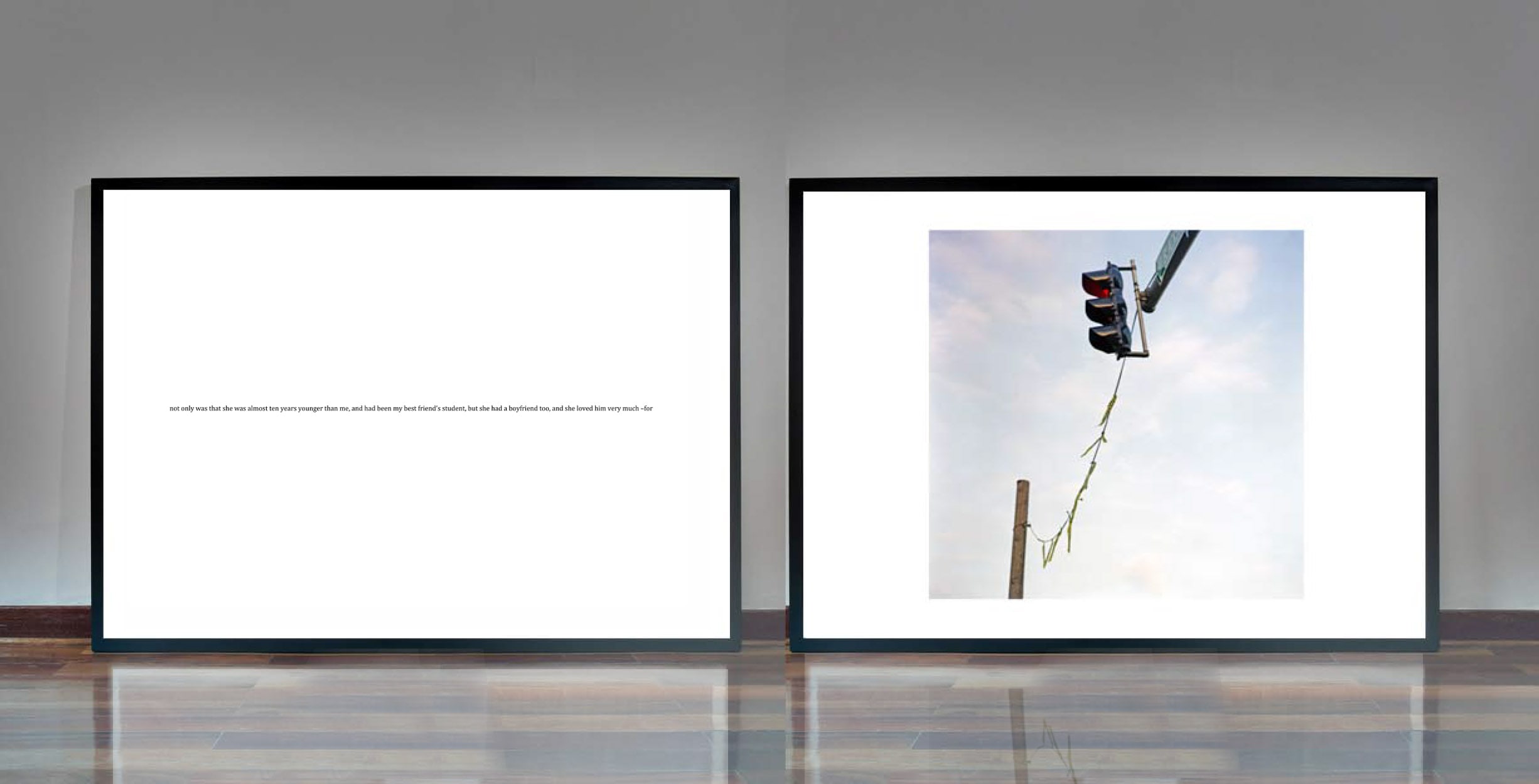 Each of the brief texts have been wriIen as continuous loop -no beginning or ending. Word and Image stand side by side, but also against each other: text and image blended in an infinite sculptural loop -one which can never be completely apprehended by the spectator with just one gaze (there will always be a piece of the story hidden from his/ her view, in the back).